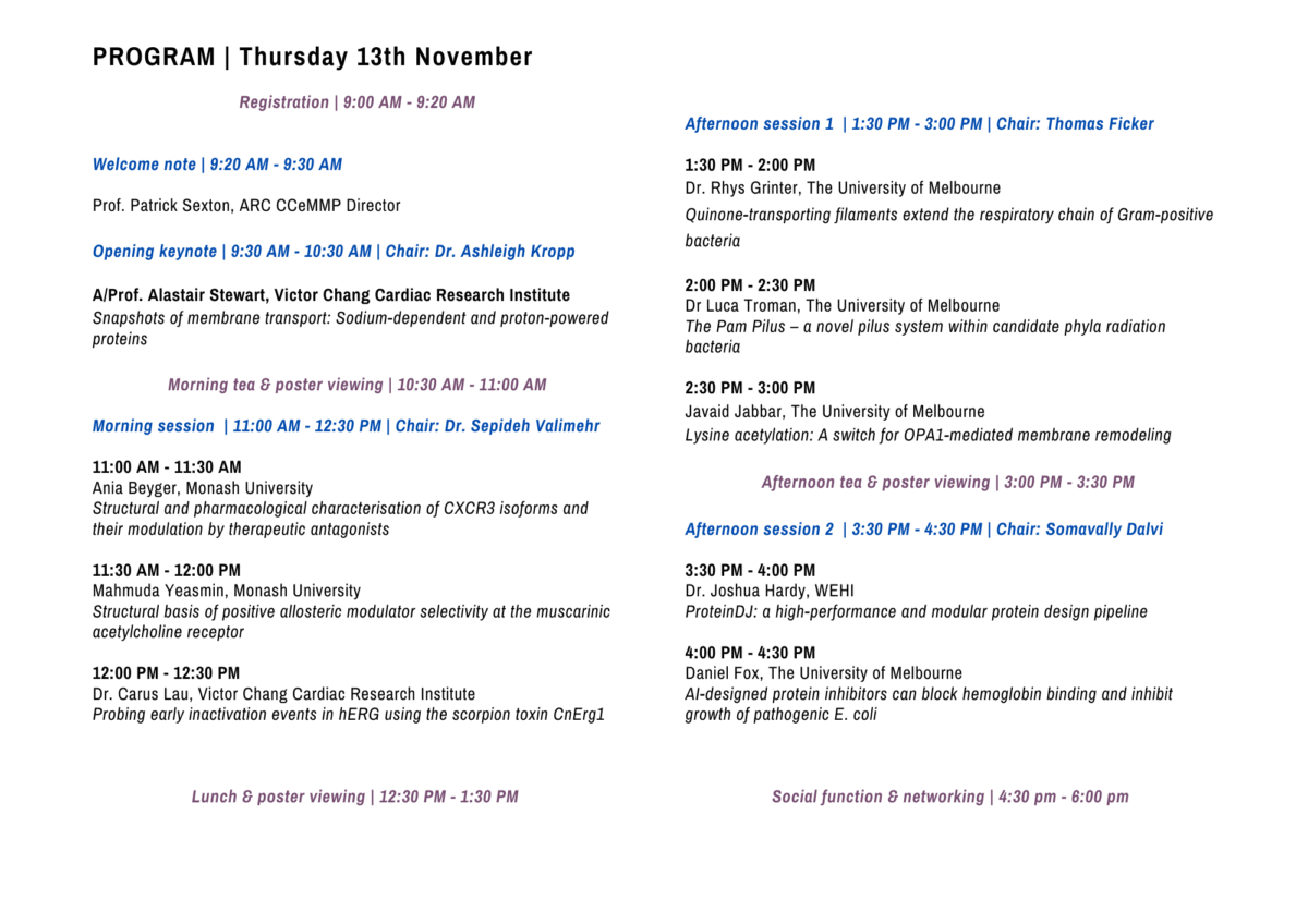 - CCeMMP Poster Prize – $300 AUD and a 3D printed protein model of your choice